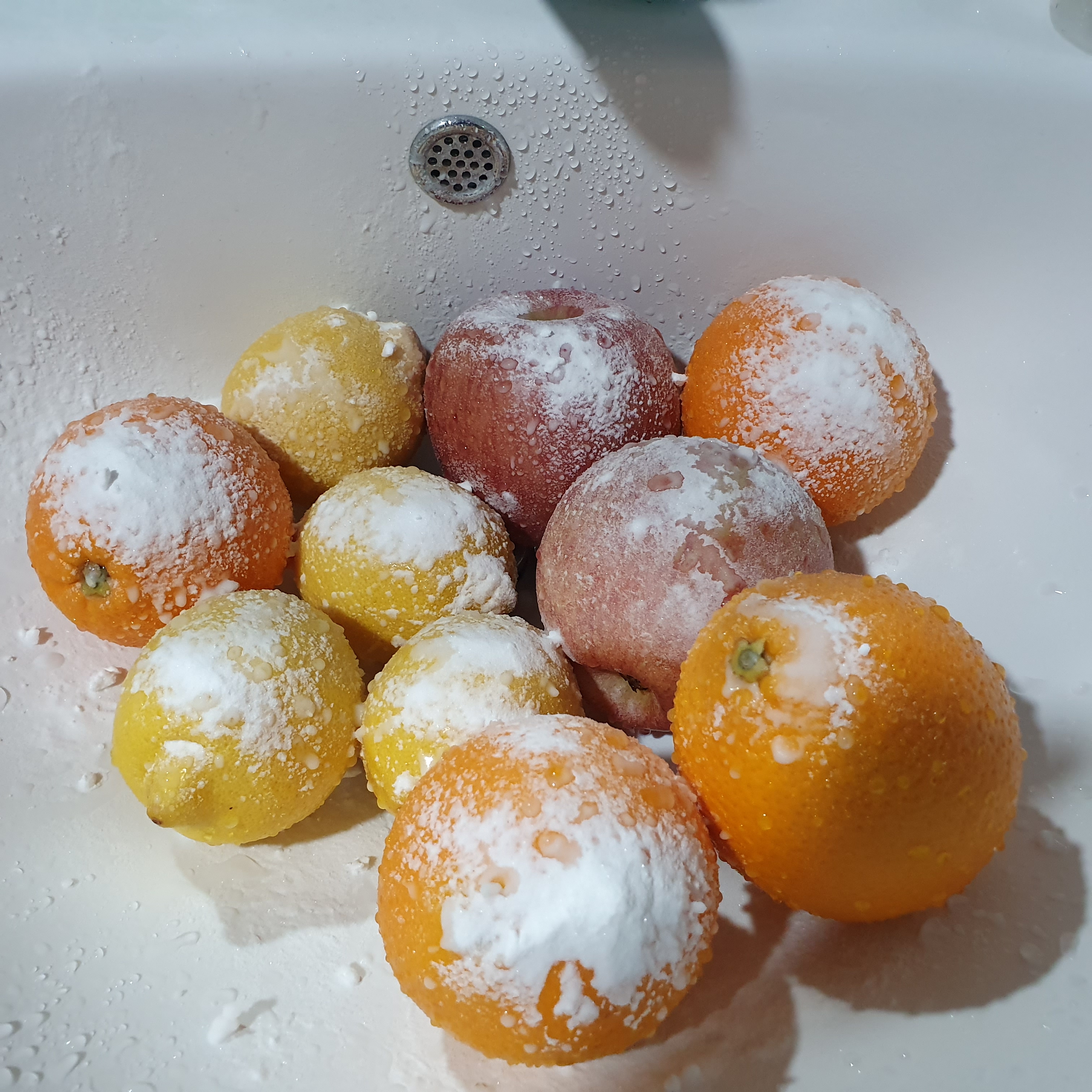 과일: 사과 1/2, 오렌지 1/2, 레몬 1/2