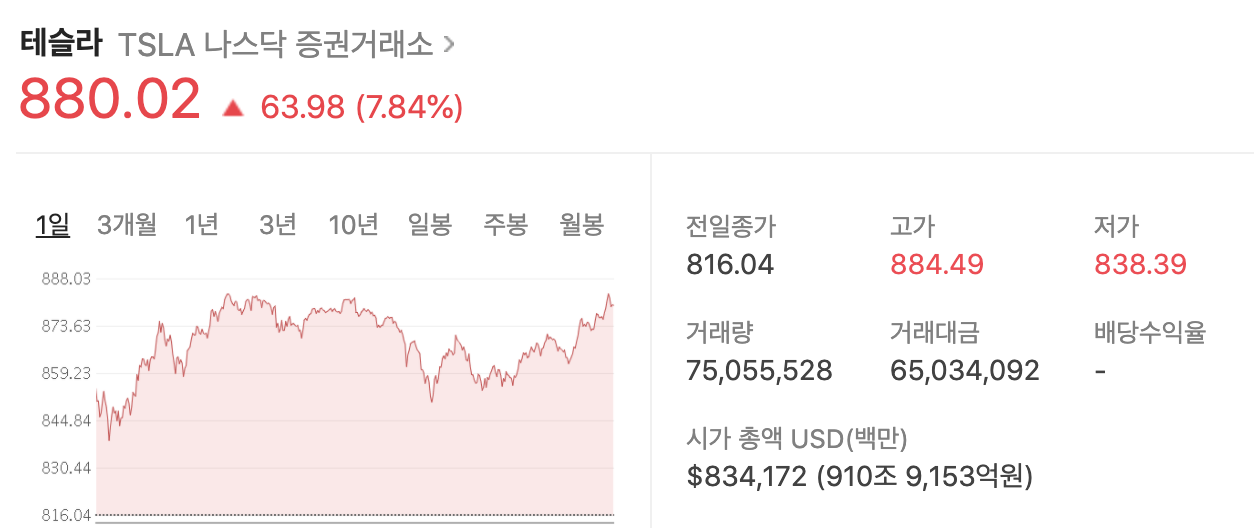 지난 8일 테슬라의 주가는