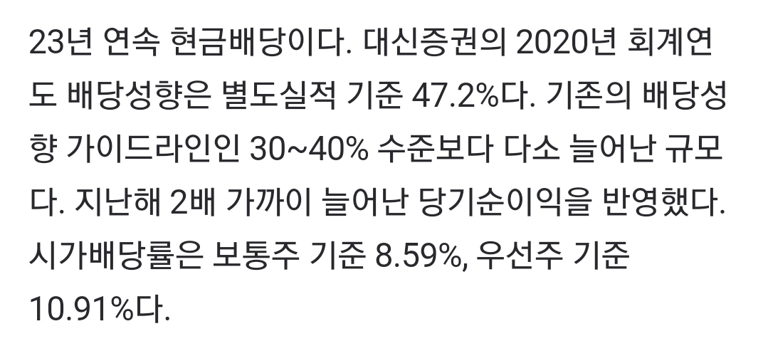 대신증권은 국내를 대표하는 고배당기업으로