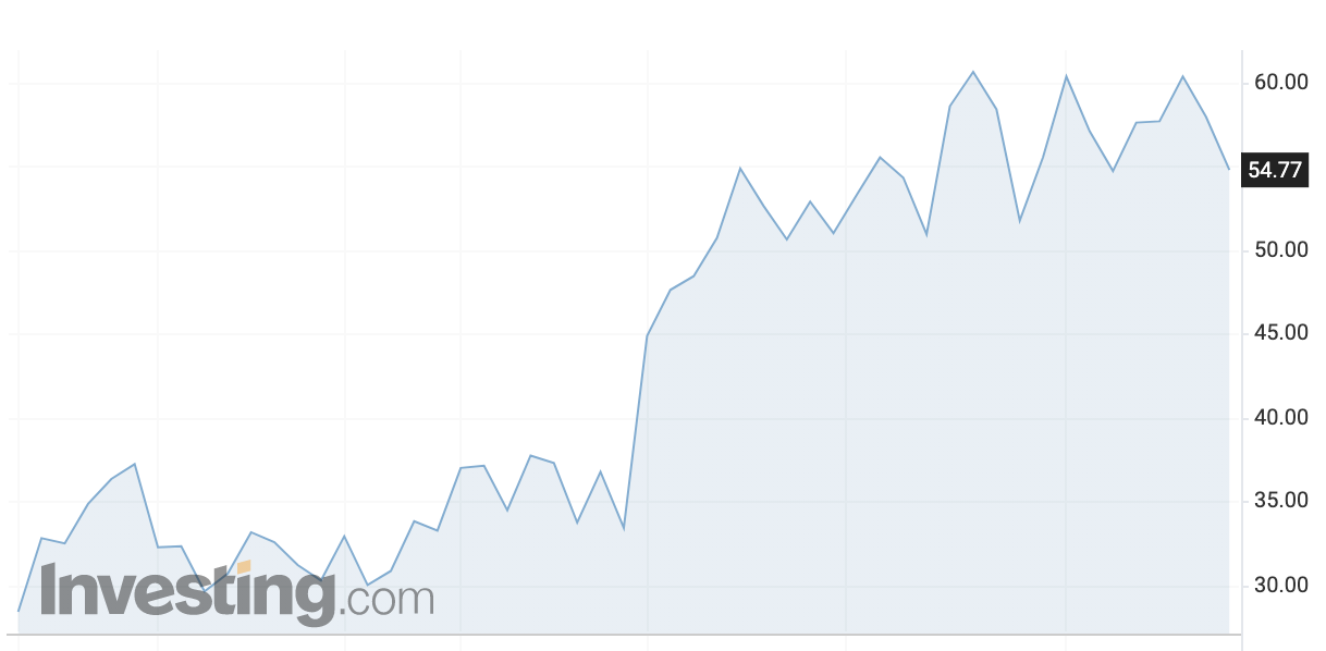 64.58 $ 로 5월 2일 기준 54.77 $ 에 비해