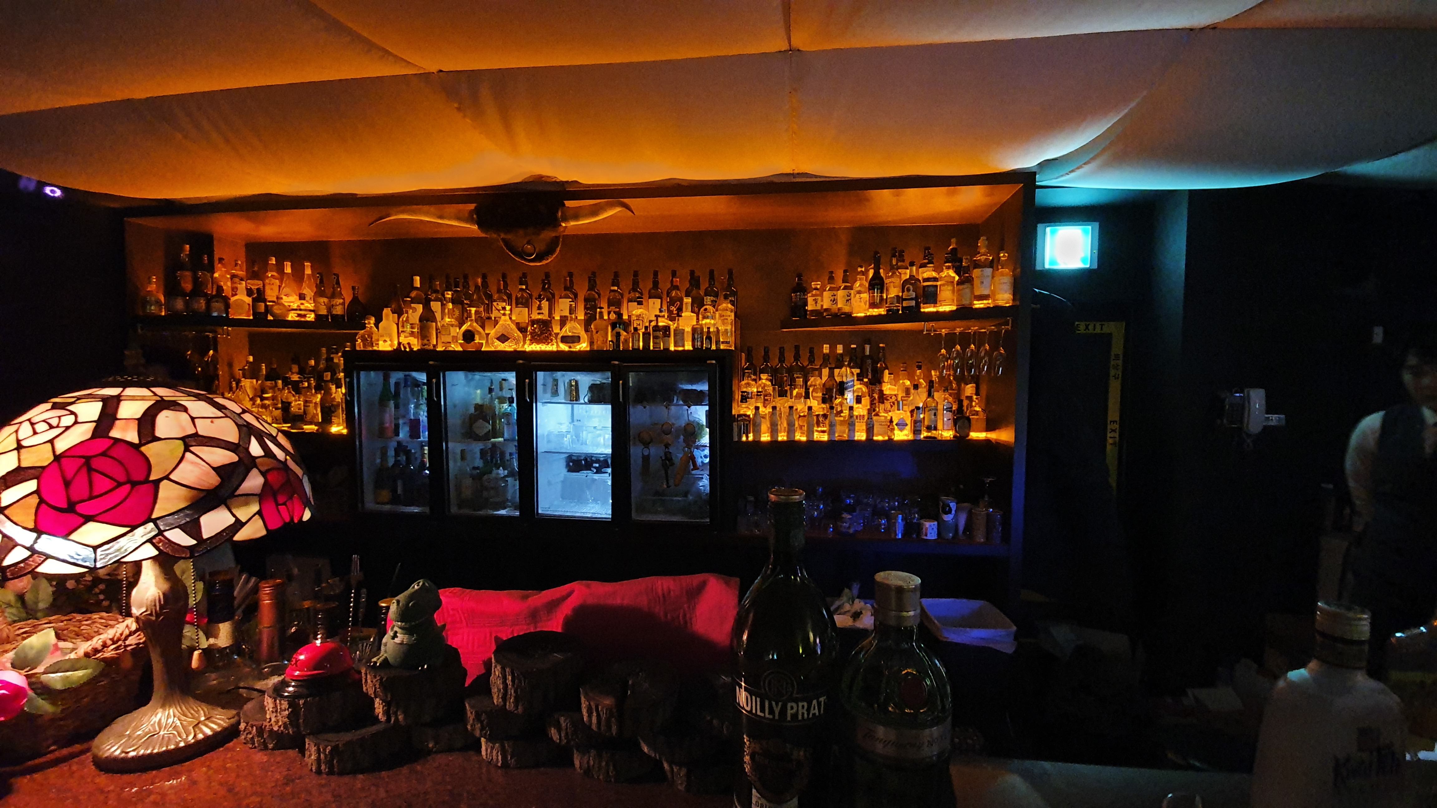 은은한 주황불빛으로 꾸며진 바테이블과
