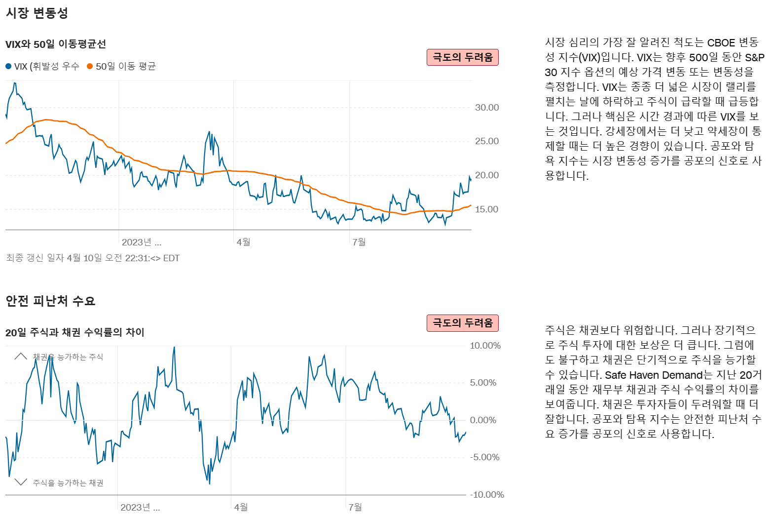 공포 탐욕 지수는 변동성 지수 VIX와 함께 투자자들이 참고하는 보조 지표로 활용되고 있으며,