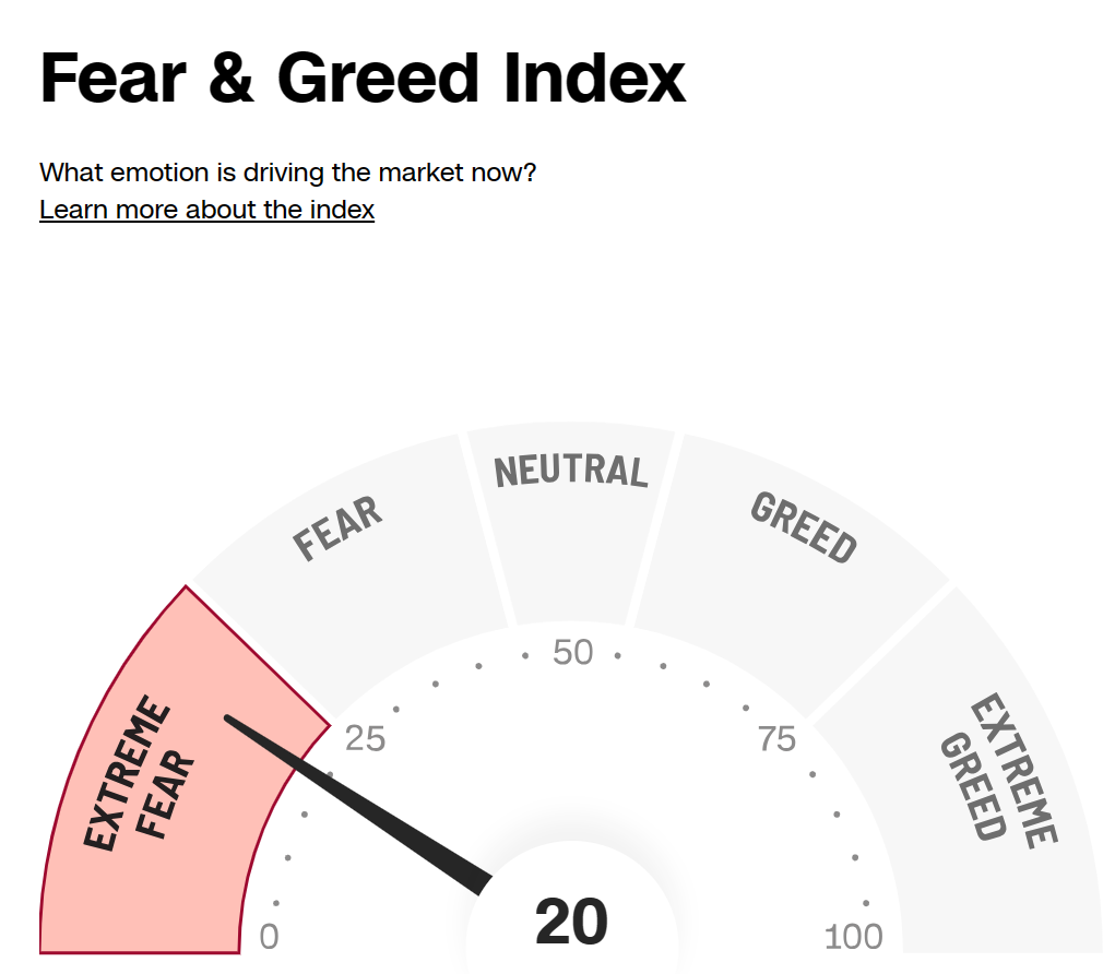 주식 시장의 분위기를 알 수 있는 지표 중 하나인 CNN fear and greed index